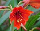 朱顶红叶厚有光泽,花色柔和艳丽,花朵硕大肥厚, 有兰花之清雅,有牡丹之大气,雅俗共赏,古人有诗云:冷睡温发培壮志,夏天才放顶头红。适于盆栽陈设于客厅、书房和窗台。